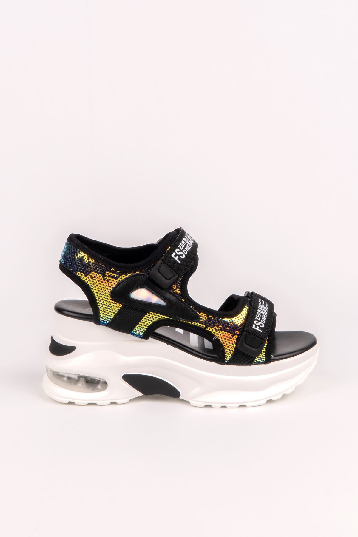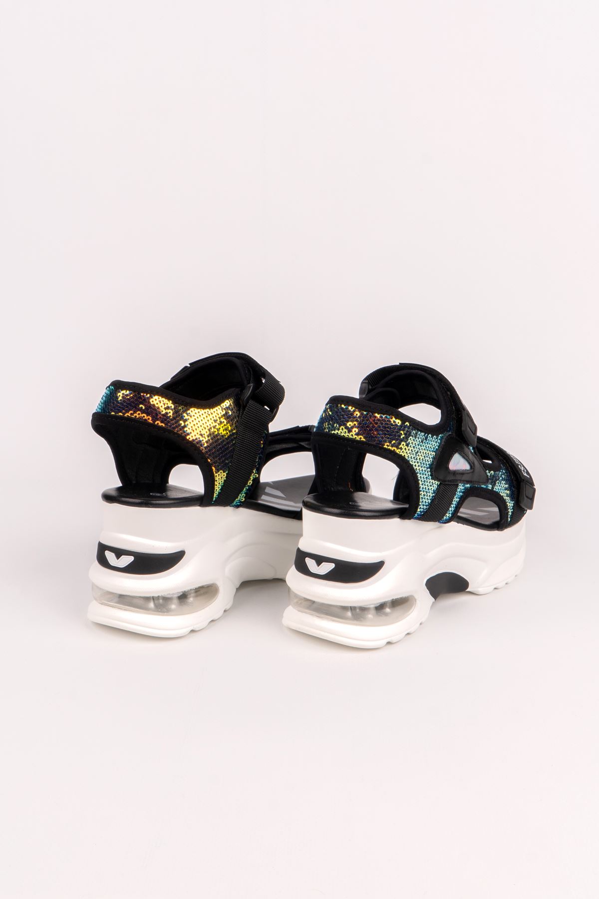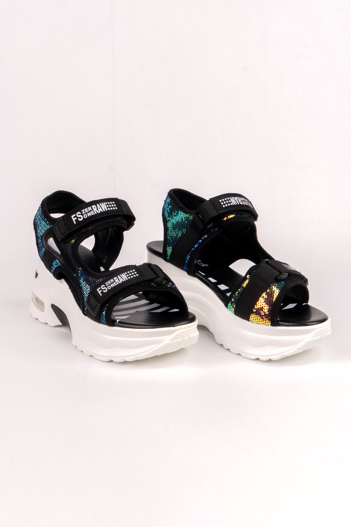 GUJA KADIN SANDALET 363-223Y-Dış Materyal : Taşlı Malzeme İç Materyal : Meşin Astar Taban Materyal : Poli Topuk Yükseklik : 7 cm