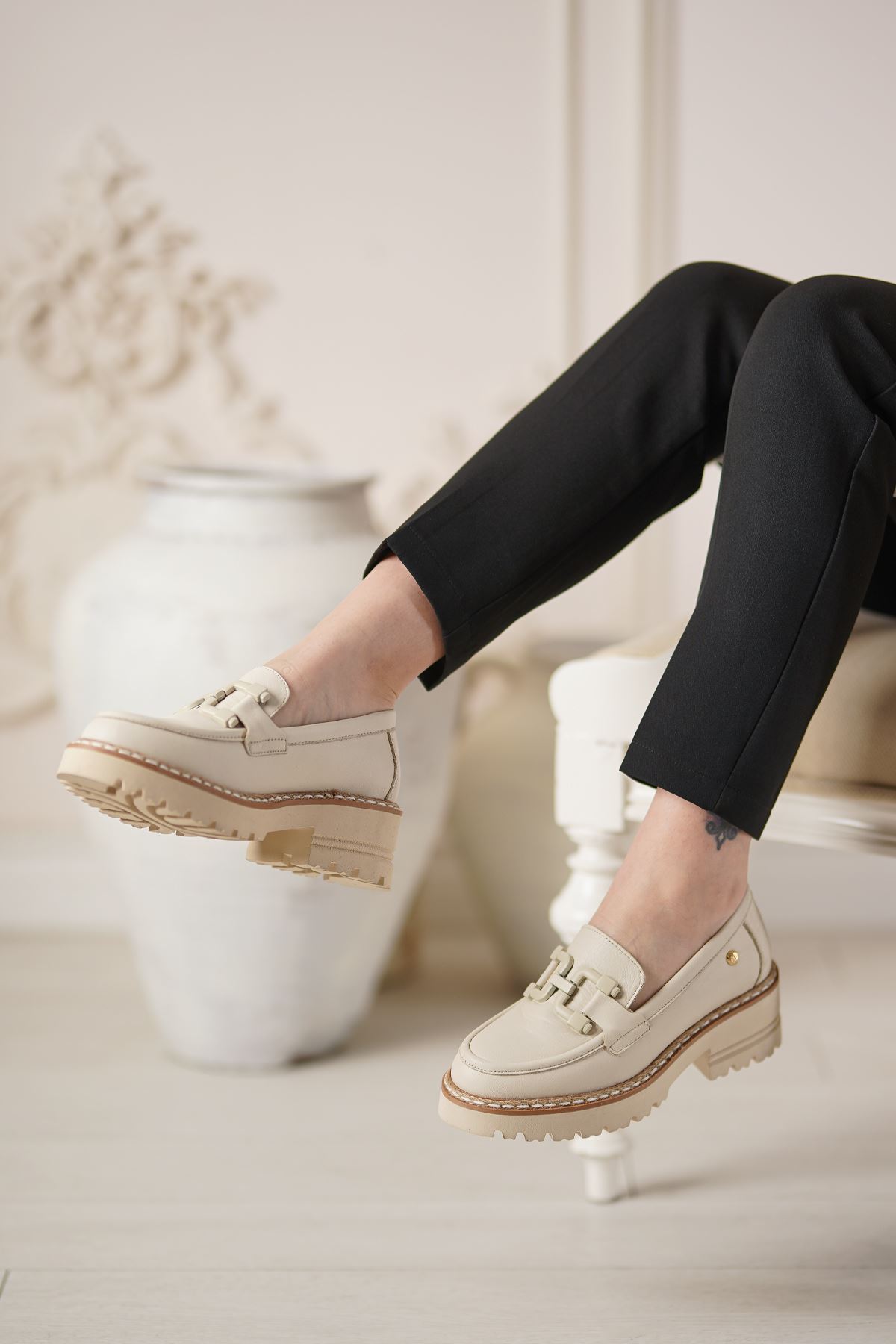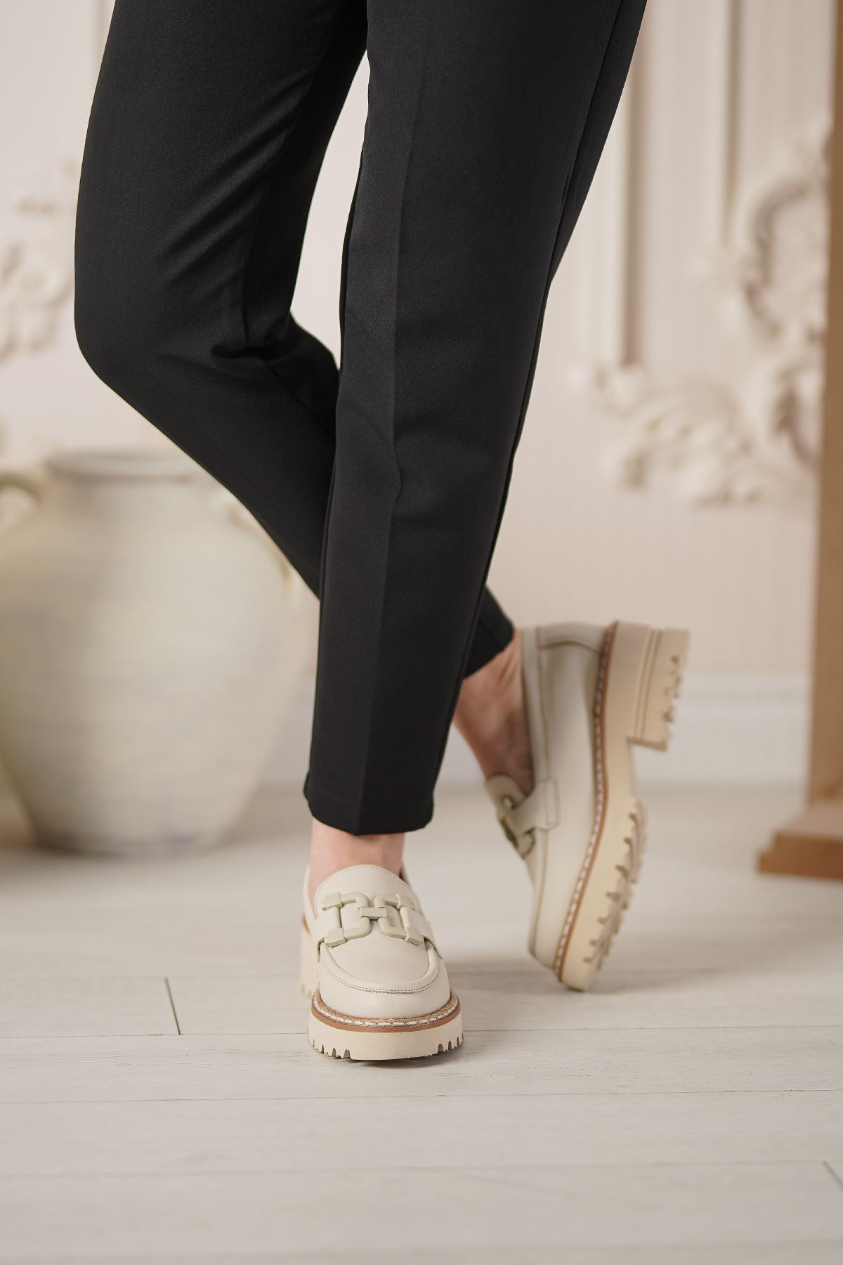 MAMMAMİA HAKİKİ DERİ KADIN GÜNLÜK AYAKKABI 376525Y-Dış Materyal : Hakiki Deri İç Materyal : Deri Astar Taban Materyal : Eva Kalıp : Standart Topuk Yükseklik : 6 cm