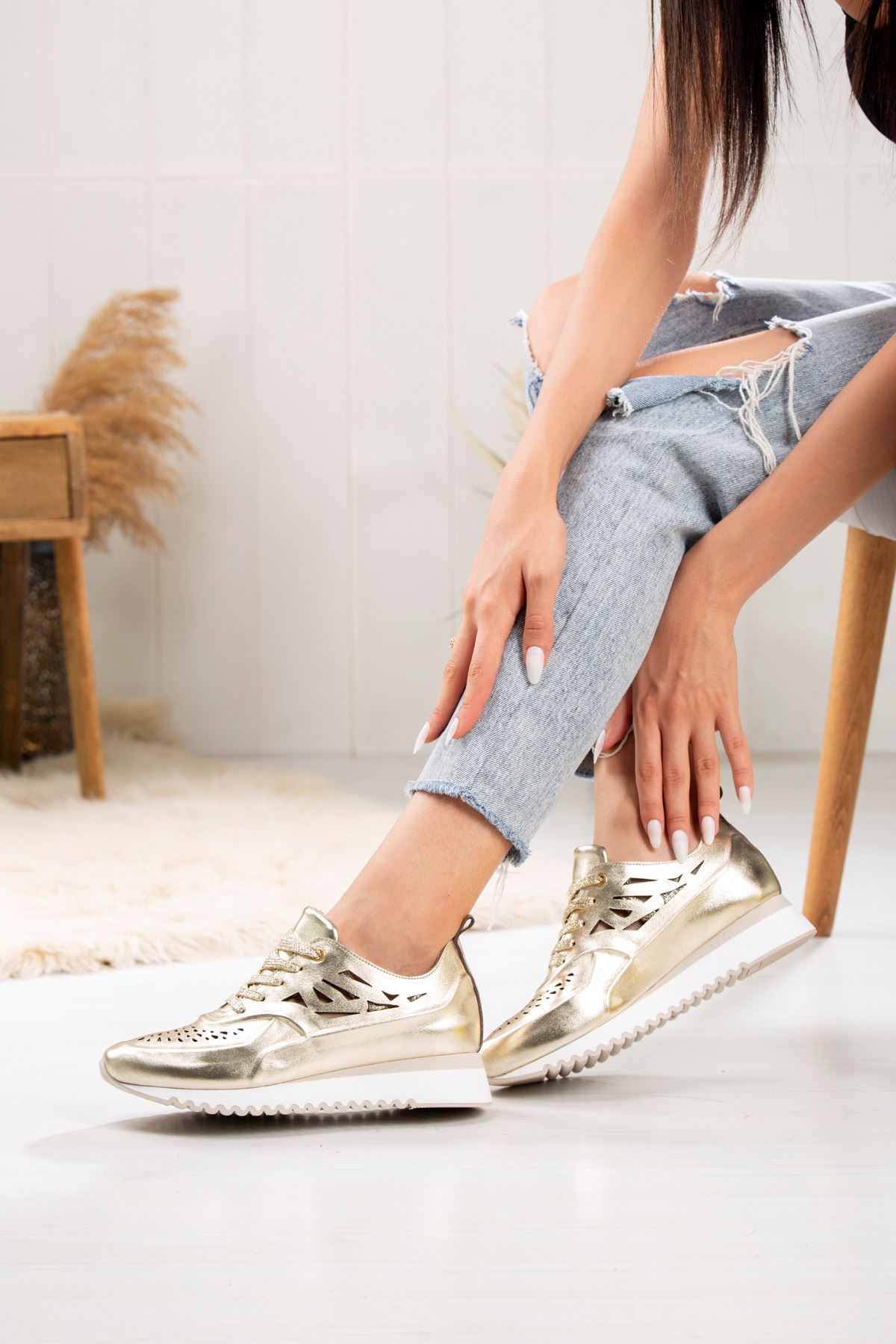MAMMAMİA HAKİKİ DERİ KADIN GÜNLÜK AYAKKABI 704524Y-Dış Materyal : Hakiki Deri İç Materyal : Deri Astar Taban Materyal : Eva Kalıp : Standart Topuk Yükseklik : 3,5 cm