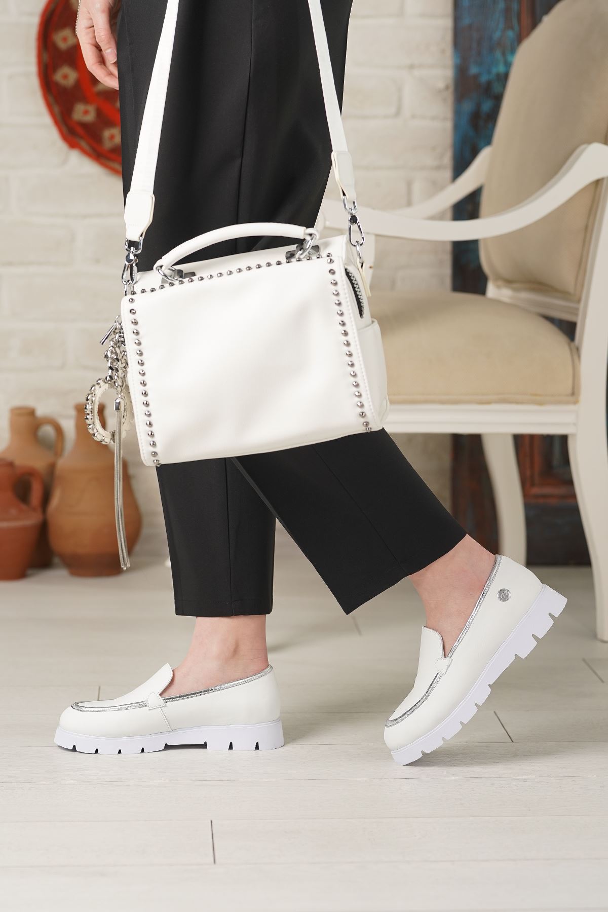 MAMMAMİA HAKİKİ DERİ KADIN GÜNLÜK AYAKKABI 738025Y-Dış Materyal : Hakiki Deri İç Materyal : Deri Astar Taban Materyal : Eva Kalıp : Standart Topuk boyu : 3 cm