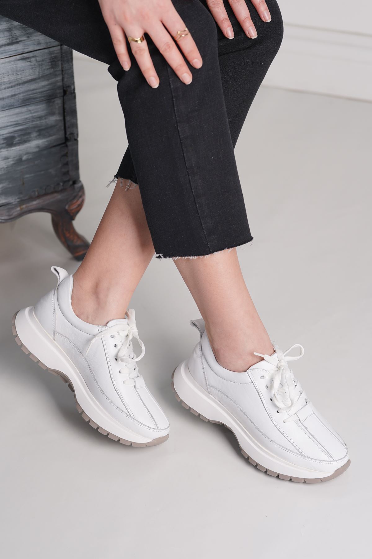 MAXİMİNO HAKİKİ DERİ KADIN SPOR AYAKKABI 50224Y-Dış Materyal : Hakiki Deri İç Materyal : Deri Astar Taban Materyal : Faylon Topuk Yükseklik : 4 cm