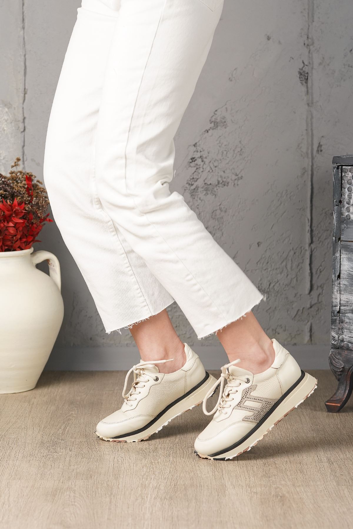 RACHEL HAKİKİ DERİ KADIN SPOR AYAKKABI 12524K-Dış Materyal : Hakiki Deri İç Materyal : Deri Astar Taban Materyal : Eva Kalıp : Standart Topuk Yükseklik : 3 cm
